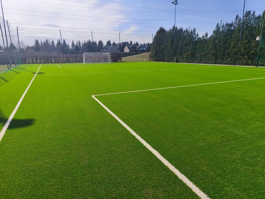 Boisko sportowe zlokalizowane przy ul. Nefrytowej 14 w Piasecznie to nowoczesny obiekt przeznaczony do gry w piłkę nożną oraz zajęć rekreacyjno-sportowych. Nawierzchnię stanowi wysokiej jakości trawa syntetyczna z zasypem korkowym, zapewniająca odpowiednią amortyzację, bezpieczeństwo użytkowników oraz komfort gry przez cały rok. Pole gry o wymiarach 37 x 20 m jest przystosowane do rozgrywek w formatach treningowych i rekreacyjnych. Boisko wyposażone jest w dwie bramki o wymiarach 5 x 2 m, co umożliwia prowadzenie zajęć piłkarskich dla różnych grup wiekowych. Obiekt posiada sztuczne oświetlenie, które pozwala na jego użytkowanie również w godzinach wieczornych oraz w okresach o ograniczonej dostępności światła dziennego. Dzięki zastosowanym rozwiązaniom technicznym boisko stanowi funkcjonalną i bezpieczną przestrzeń do aktywności fizycznej.